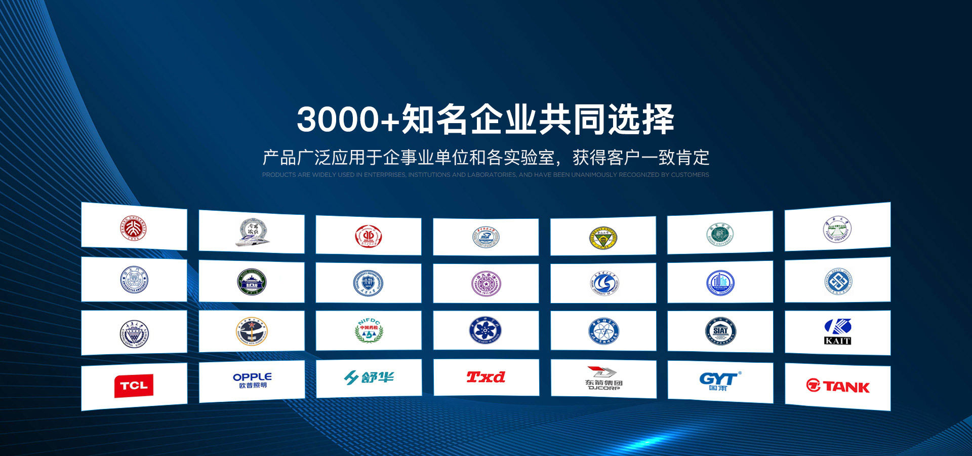 3000+知名企業,1000+科研單位、學院共同的選擇,產品廣泛應用于等企事業單位和各實驗室。